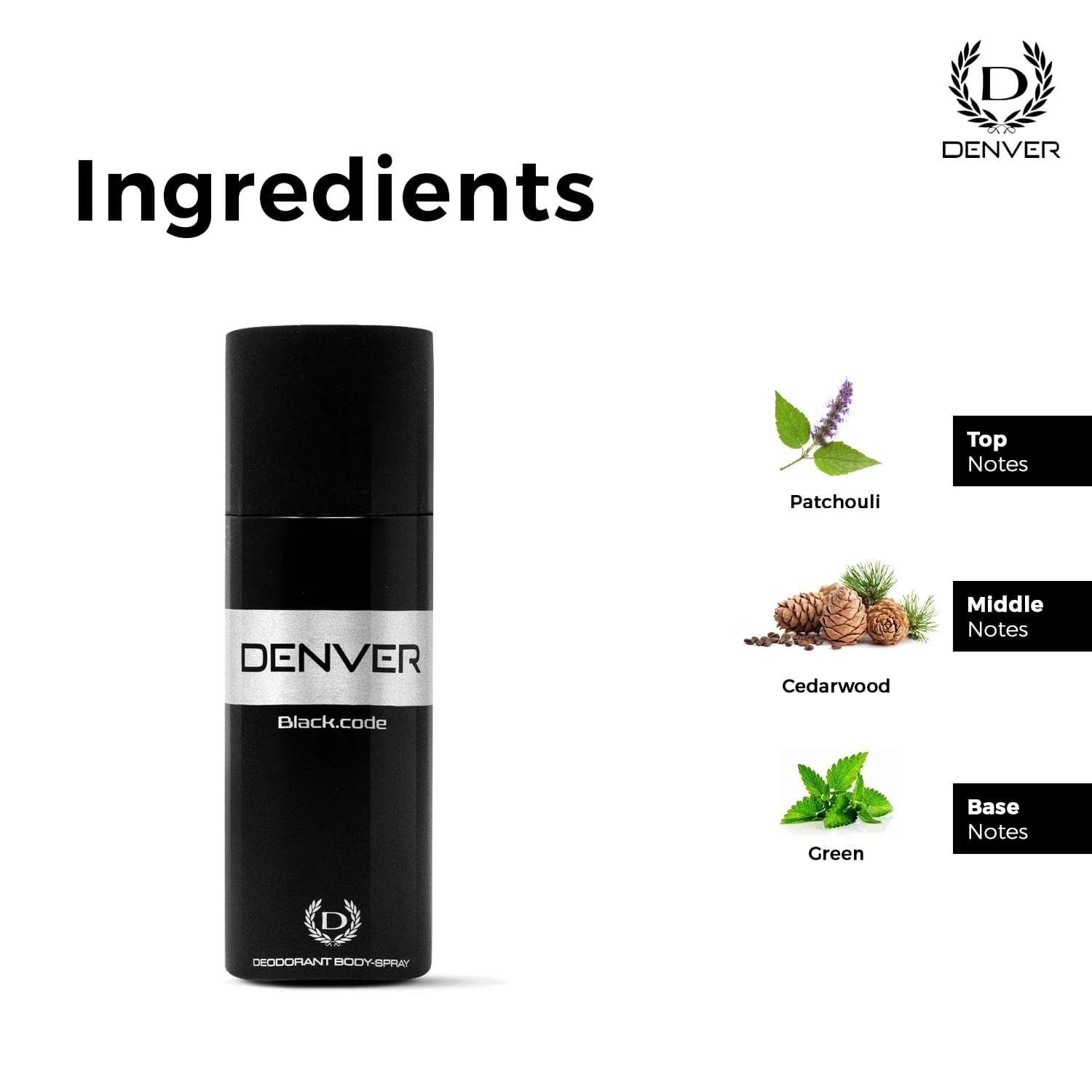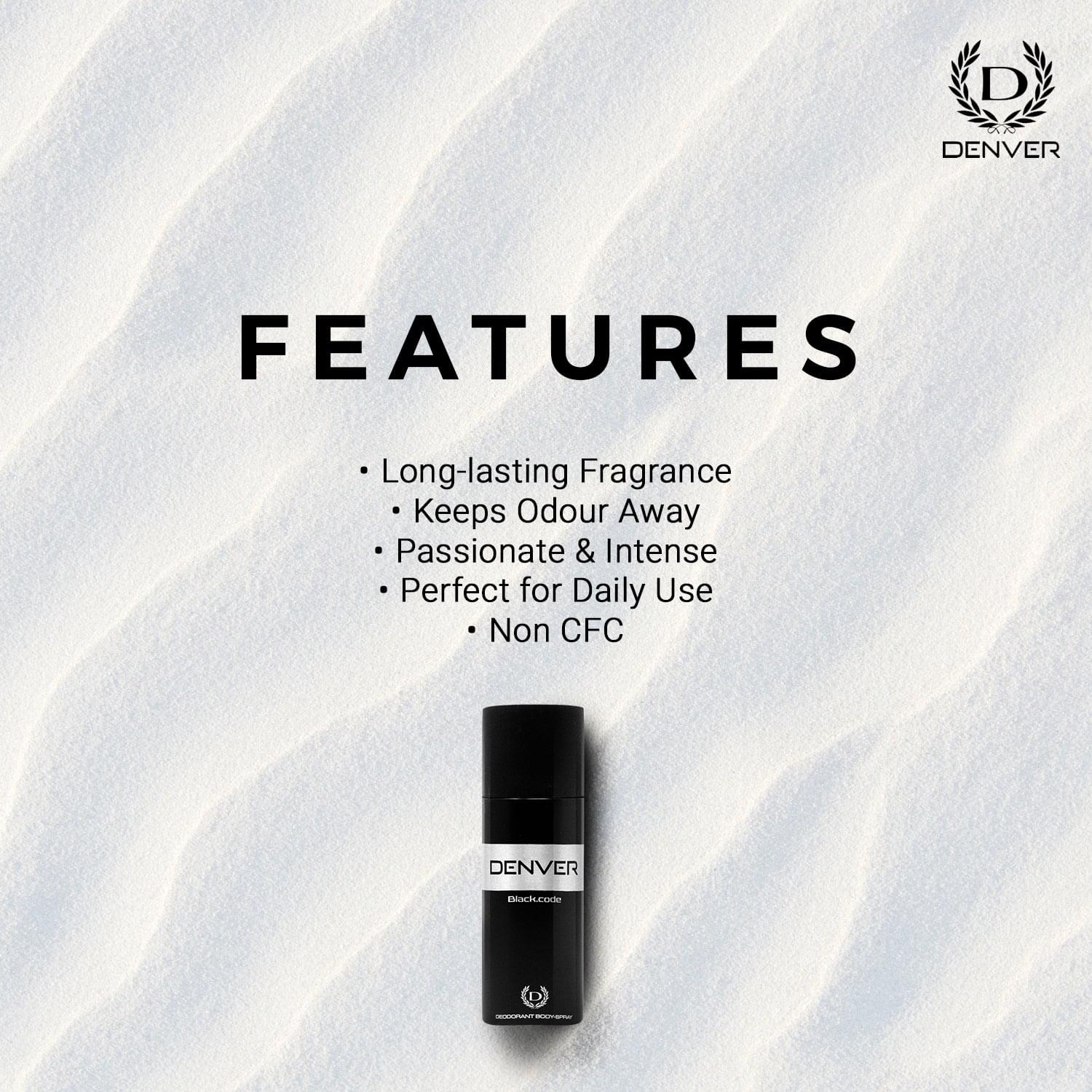 DENVER – Black Code Deodorant Body Spray | Long Lasting Deodorant for Men