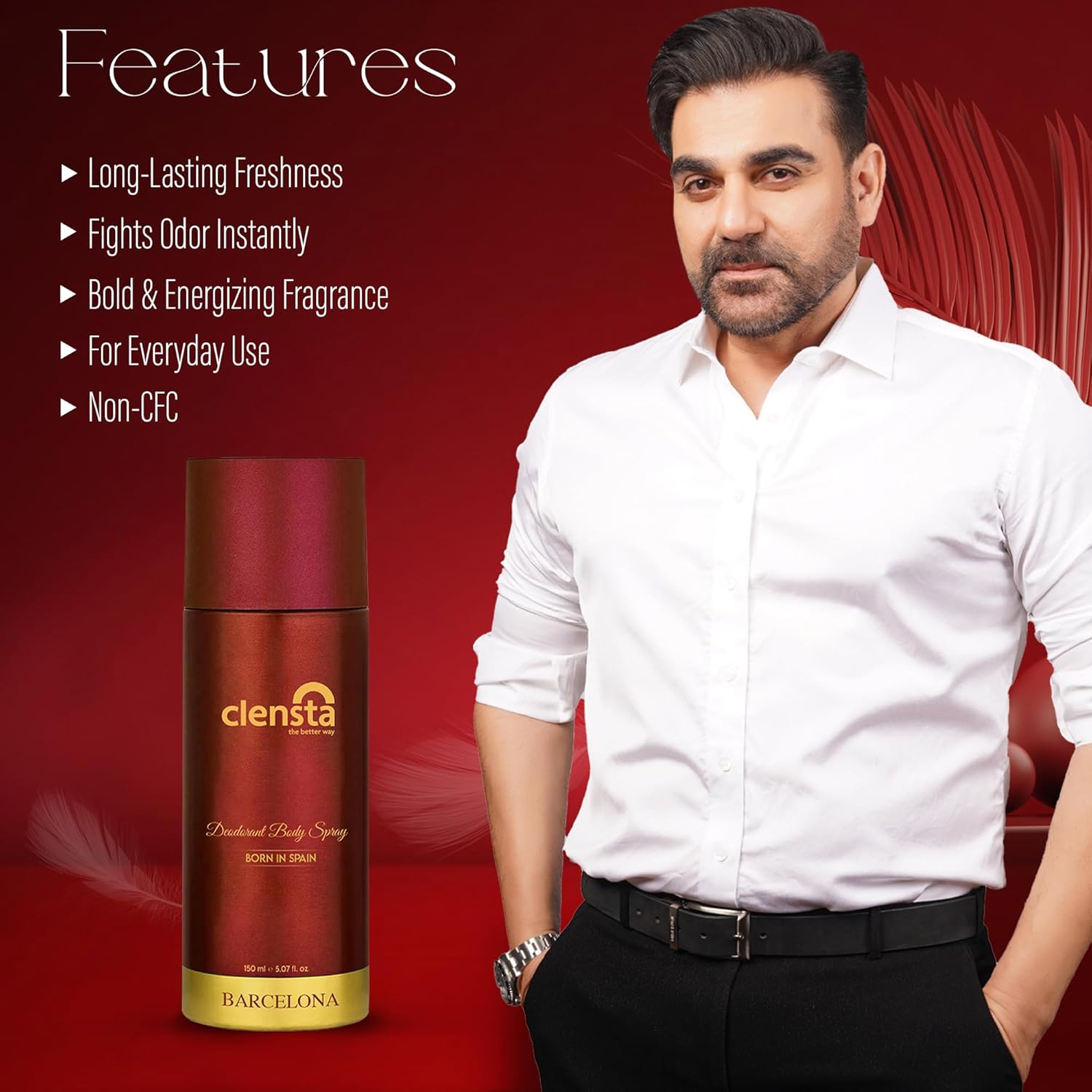 Clensta Barcelona Deodorant for Men 150ml Body Spray Long Lasting | All Day Freshness | Born in Spain